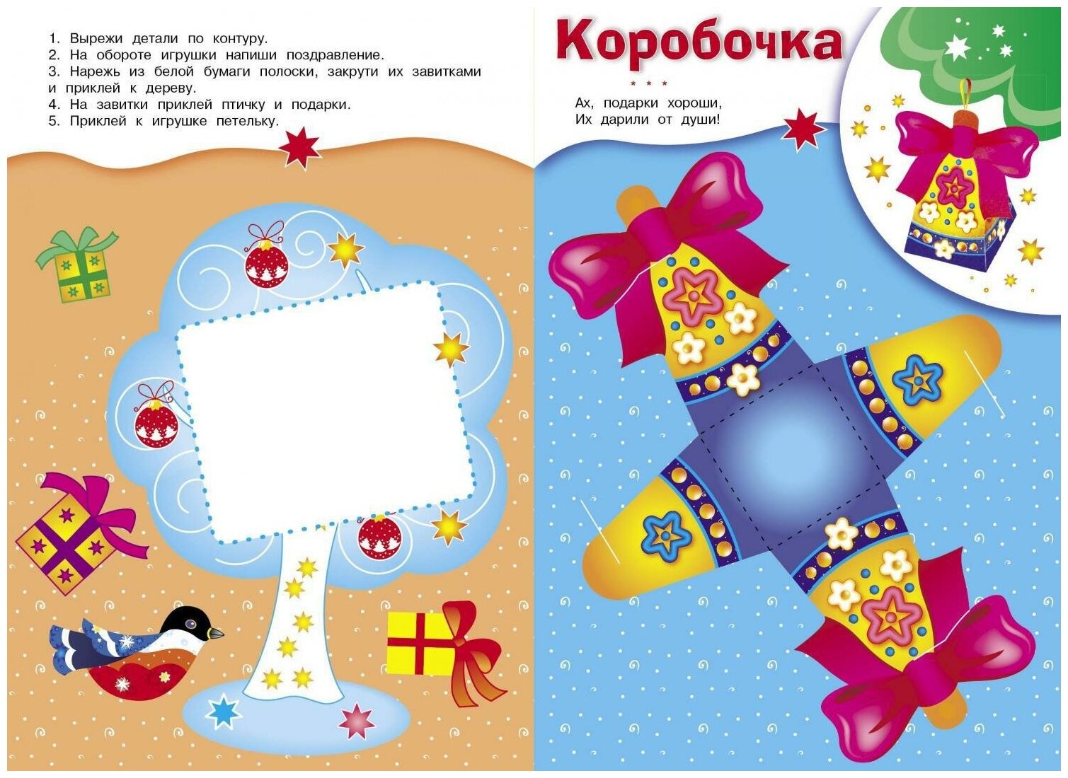 Подарите своему ребёнку радость творчества! Эта чудесная книжка поможет ему смастерить яркие и оригинальные ёлочные украшения. Для этого понадобятся только ножницы и клей. Получившиеся поделки можно будет повесить на ёлку или подарить бабушкам и дедушкам, братьям и сёстрам.