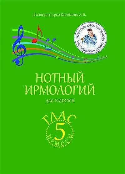 Нотный ирмологий для клироса - уникальная разработка регентских курсов Колобанова А.В. Впервые, на ноты положены все ирмосы годового богослужебного круга, всех гласов. Безусловным удобством является наиболее употребимое в наше время изложение - в терцию, а так же сами мотивы - наиболее распространенные напевы гласов. Ноты могут использоваться как в хорах с полным составом (4-х голосным), так и с некоторыми отсутствующими голосами.
