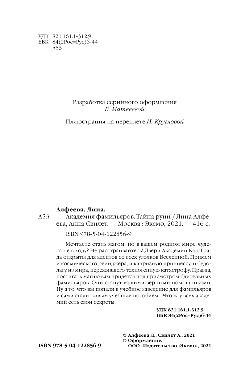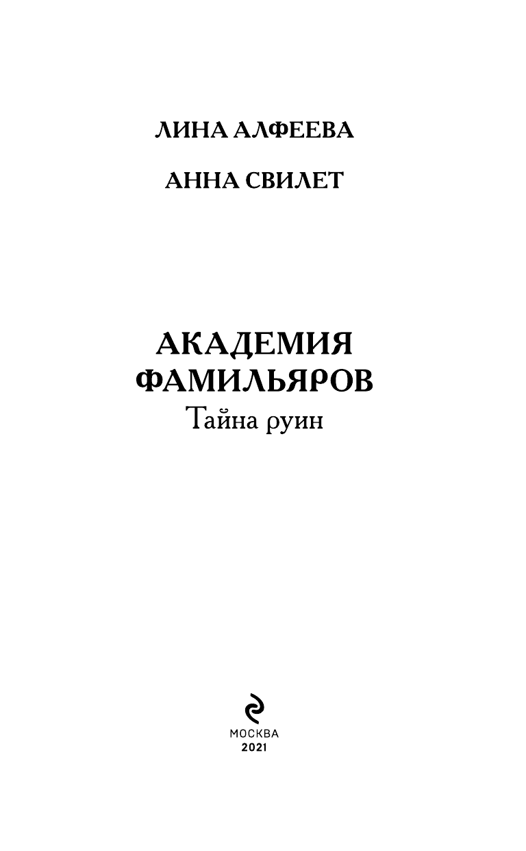 Академия фамильяров. Тайна руин (Лина Алфеева, Анна Свилет); Эксмо, Редакция 1, 2021