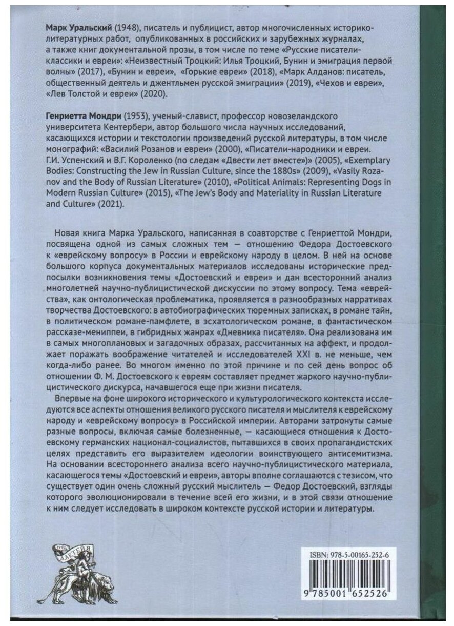 Настоящая книга, написанная писателем-документалистом Марком Уральским (Глава I-VIII) в соавторстве с ученым-филологом, профессором новозеландского университета Кентербери Генриеттой Мондри (Глава IХ-ХI), посвящена одной из самых сложных в силу своей тенденциозности тем научного достоевсковедения — отношению Федора Достоевского к "еврейскому вопросу" в России и еврейскому народу в целом. В ней на основе большого корпуса документальных материалов исследованы исторические предпосылки возникновения темы "Достоевский и евреи" и дан всесторонний анализ многолетней научно-публицистической дискуссии по этому вопросу.