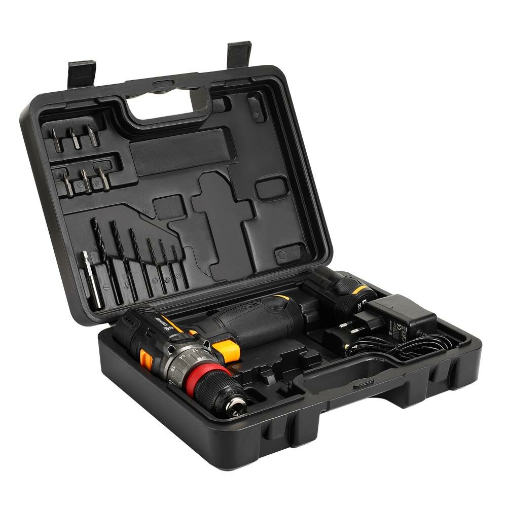 | Комплект поставки | Аккумуляторная дрель, 2 аккумулятора, зарядное устройство, кейс. |