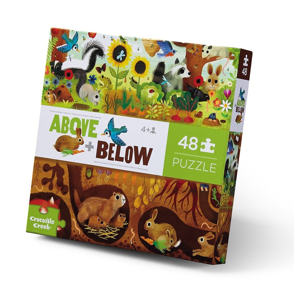 «Над и под» — серия познавательных пазлов от Crocodile Creek. В сюжетах головоломок представлен окружающий мир сразу с двух ракурсов: сверху и снизу! Соберите пазл вместе с вашим малышом, а потом изучите все детали и отличия «неба» и «земли».