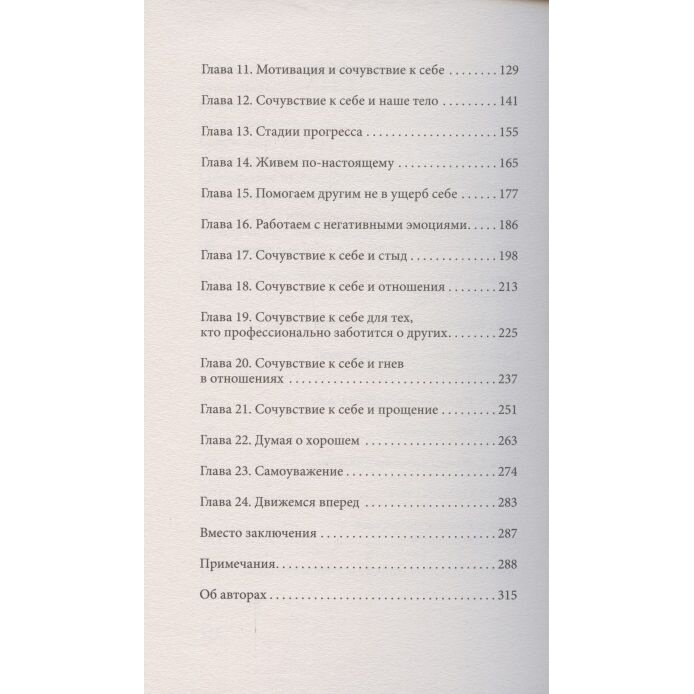 Хоть и даются примеры американские, многие моменты откликаются. Эта книга напоминают о том, что все мы — люди — которые в большинстве одинаково безжалостно ведут себя по отношению к самому близкому человеку — к себе. Более того, на нашем постсоветском пространстве это явление гнобления себя, особенно в тяжелых ситуациях, достигло какого-то апогея-апофеоза. И лечить себя от этого лучше всего своими же собственными руками, головой и сердцем. Рекомендую всем, кто привык себя критиковать по любому поводу и без.