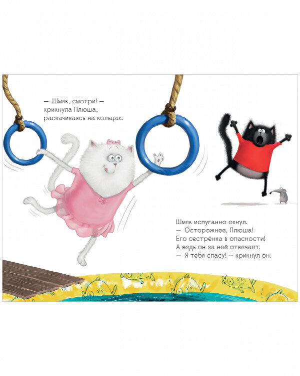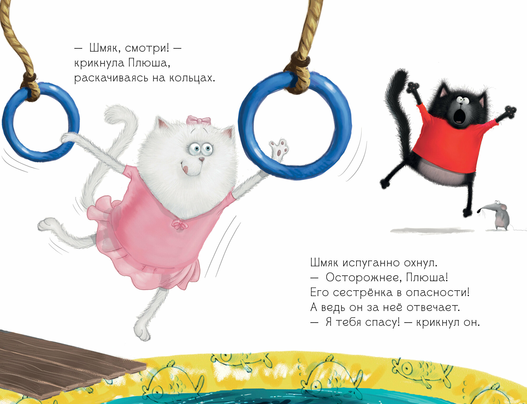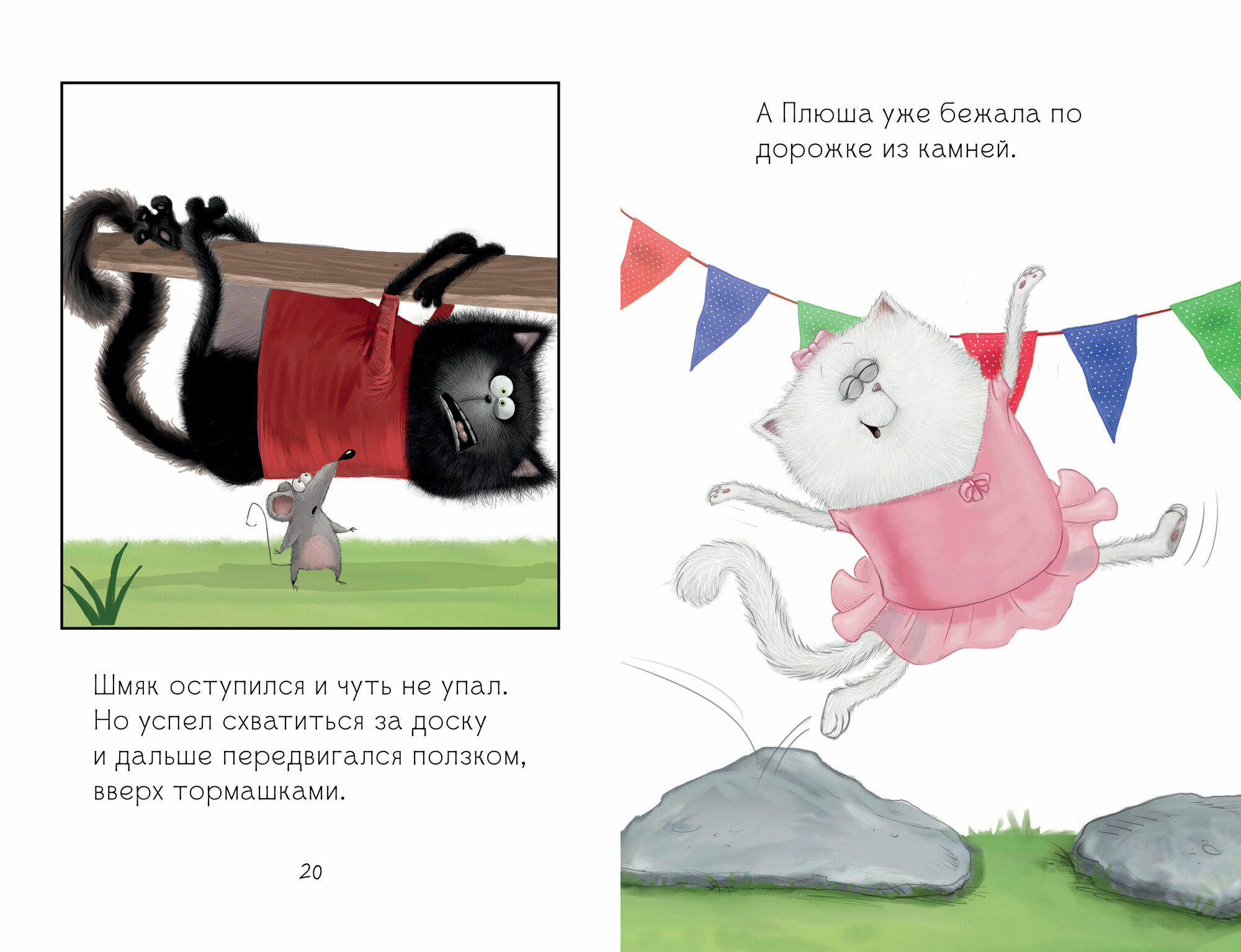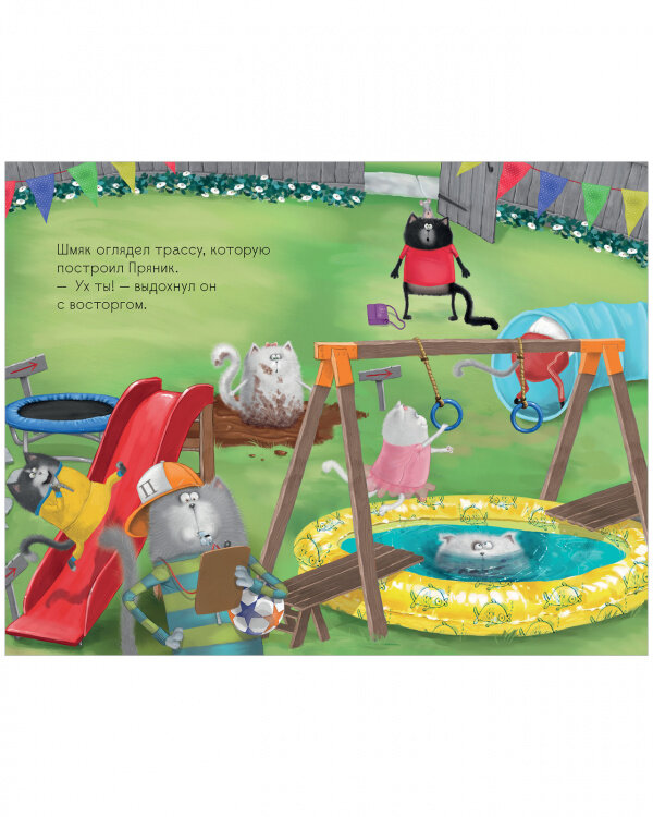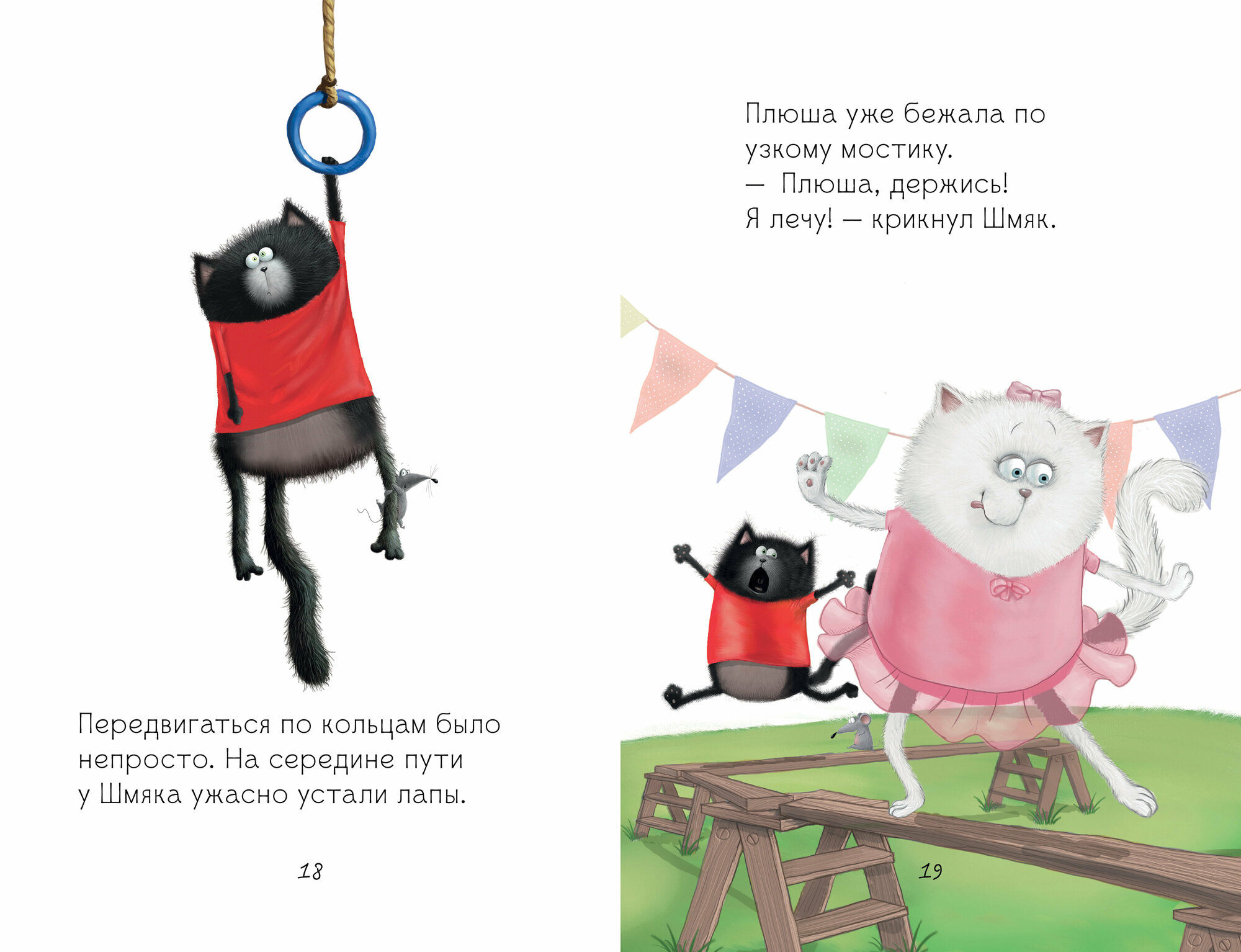 Книжечка про котёнка Шмяка и его друзей очень понравилась. Герои до невозможного милые, главный герой весьма неуклюжий. Текста в книге не очень много, от чего она подойдёт для ребёнка, что только учиться читать.
