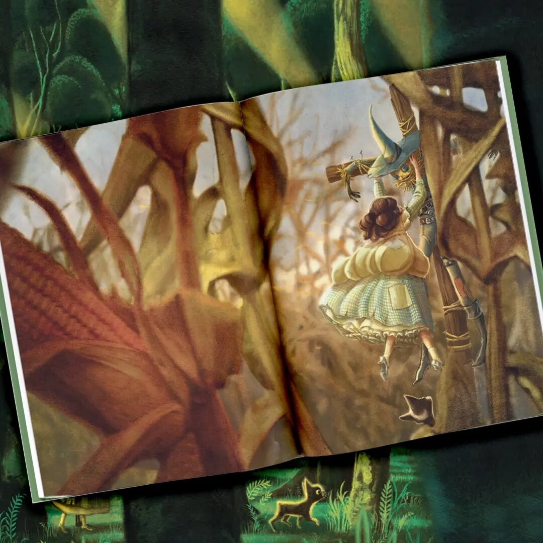 Работая над этой сказкой, знаменитый художник Бенжамен Лакомб продумал каждую деталь, будь то оформление разворотов, орнаменты в стиле модерн и ар-деко или специальный изумрудный оттенок страниц. Неповторимый стиль Лакомба позволяет по-новому взглянуть на Дороти, Страшилу, Железного Дровосека и других любимых персонажей!