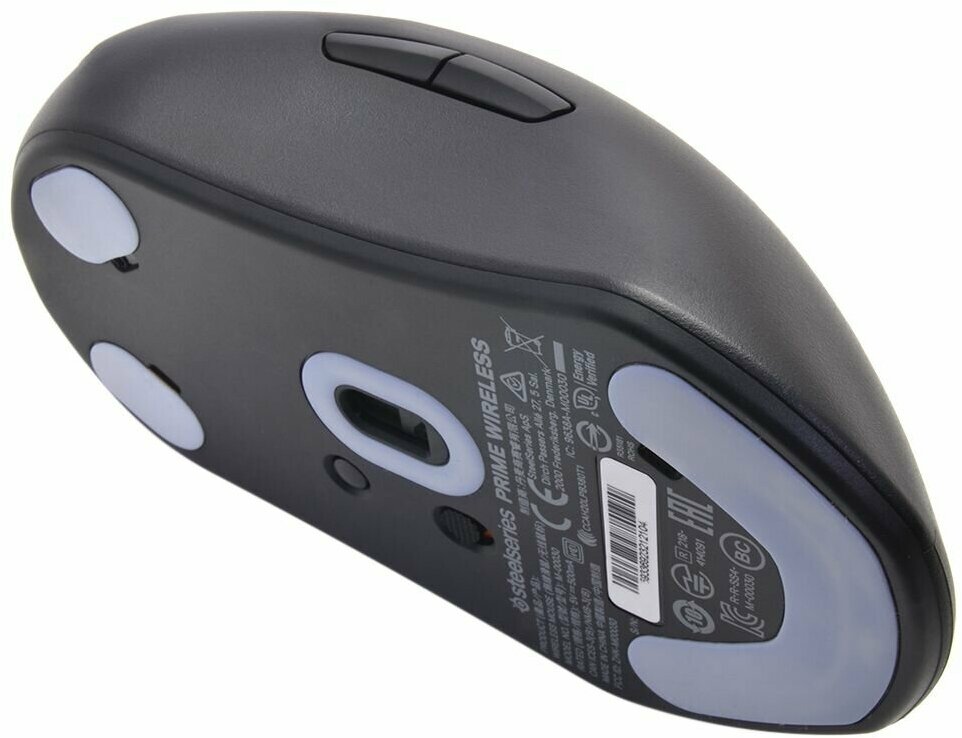 Беспроводная мышь Steelseries Prime Wireless 62593 черного цвета обладает массой 80 г. Ножки выполнены из фторопласта. В качестве интерфейсов для связи с персональным компьютером применяются Bluetooth, USB и радиоканал. Устройство питается от батареи типа Li-Ion. Зарядка осуществляется через USB-порт. Конструкция мыши адаптирована для эксплуатации правой рукой. В комплекте поставляется кабель USB для зарядки. Оптическое разрешение модели составляет от 100 до 18000 т/д.