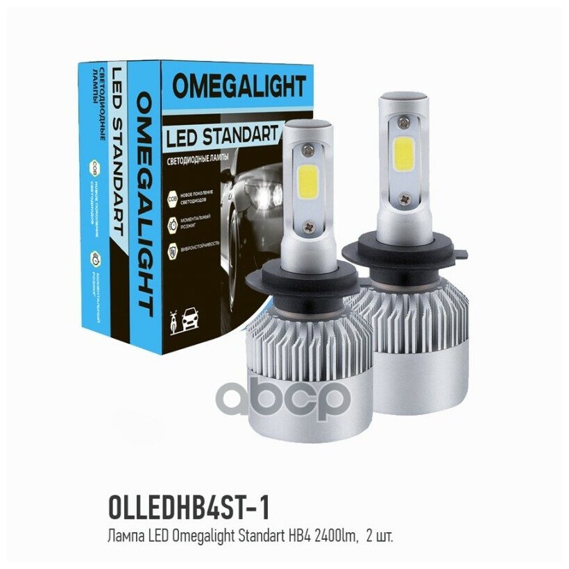 Лампа автомобильная светодиодная OMEGA LIGHT HB4 12В 2шт OLLEDHB4ST-1