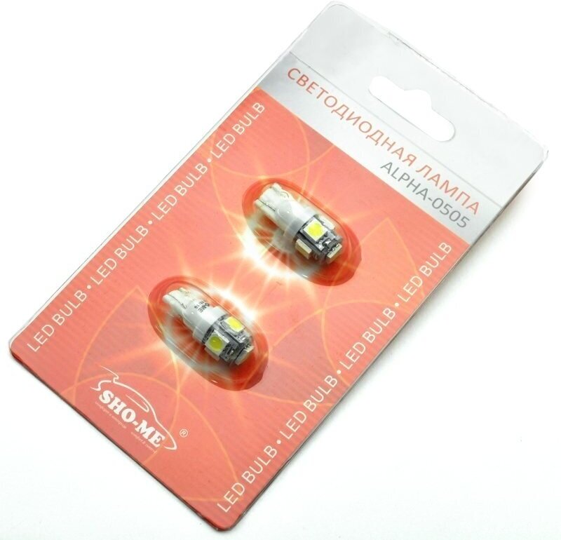 Лампа автомобильная светодиодная SHO-ME T10 12В 2шт ALPHA-0505