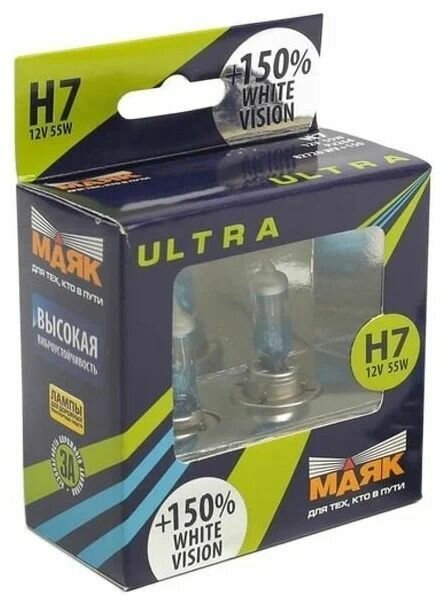 Лампа автомобильная галогенная МАЯК H7 12В 2шт 82720WV+150