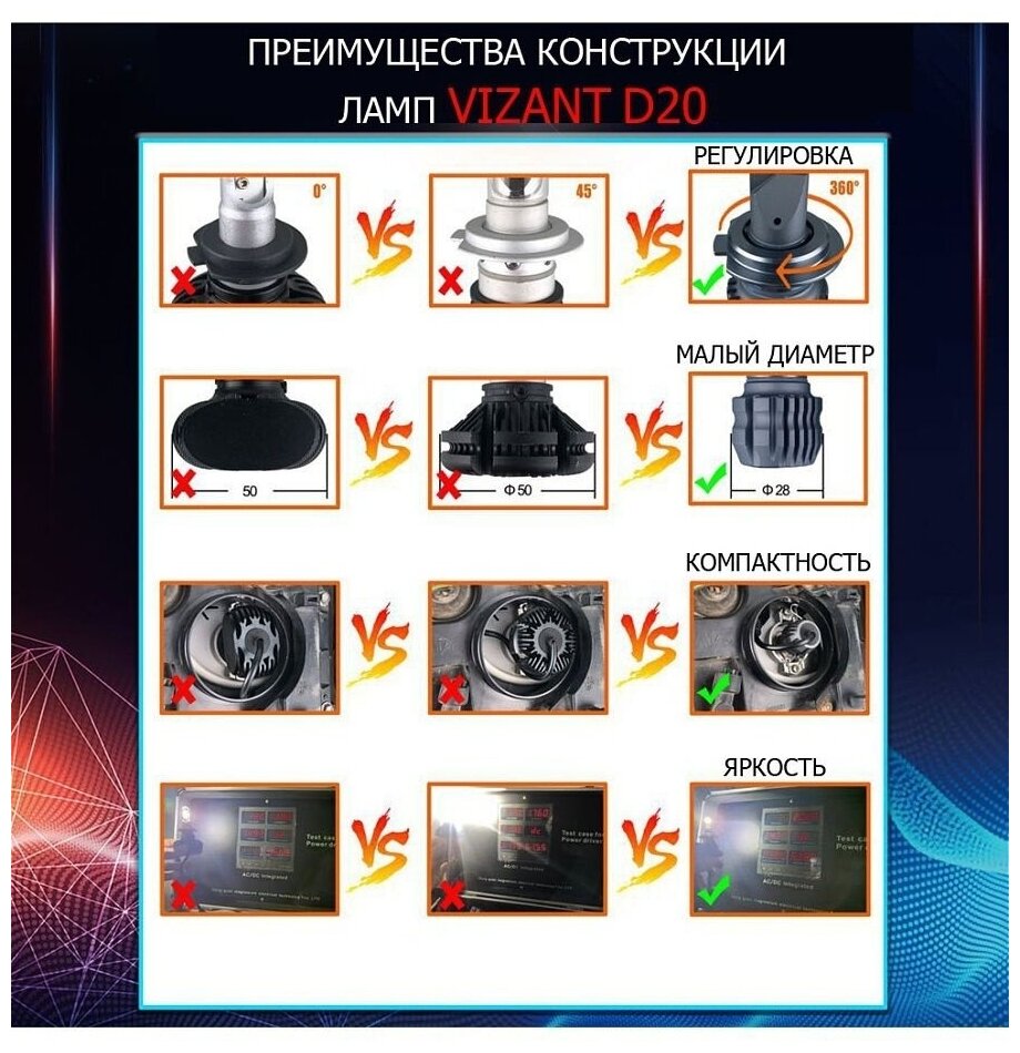 Лампы являются новой моделью компании Vizant и развитием серии D5 с улучшенными характеристиками и материалами.