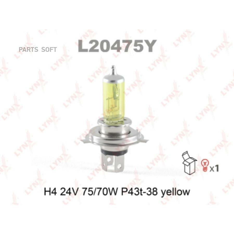 Лампа автомобильная галогенная LYNXAUTO H4 12В 1шт L20475Y