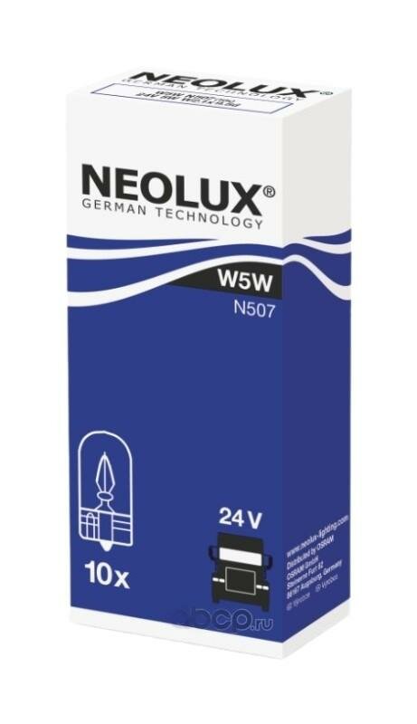 Лампа автомобильная галогенная NEOLUX W5W 24В 1шт N507