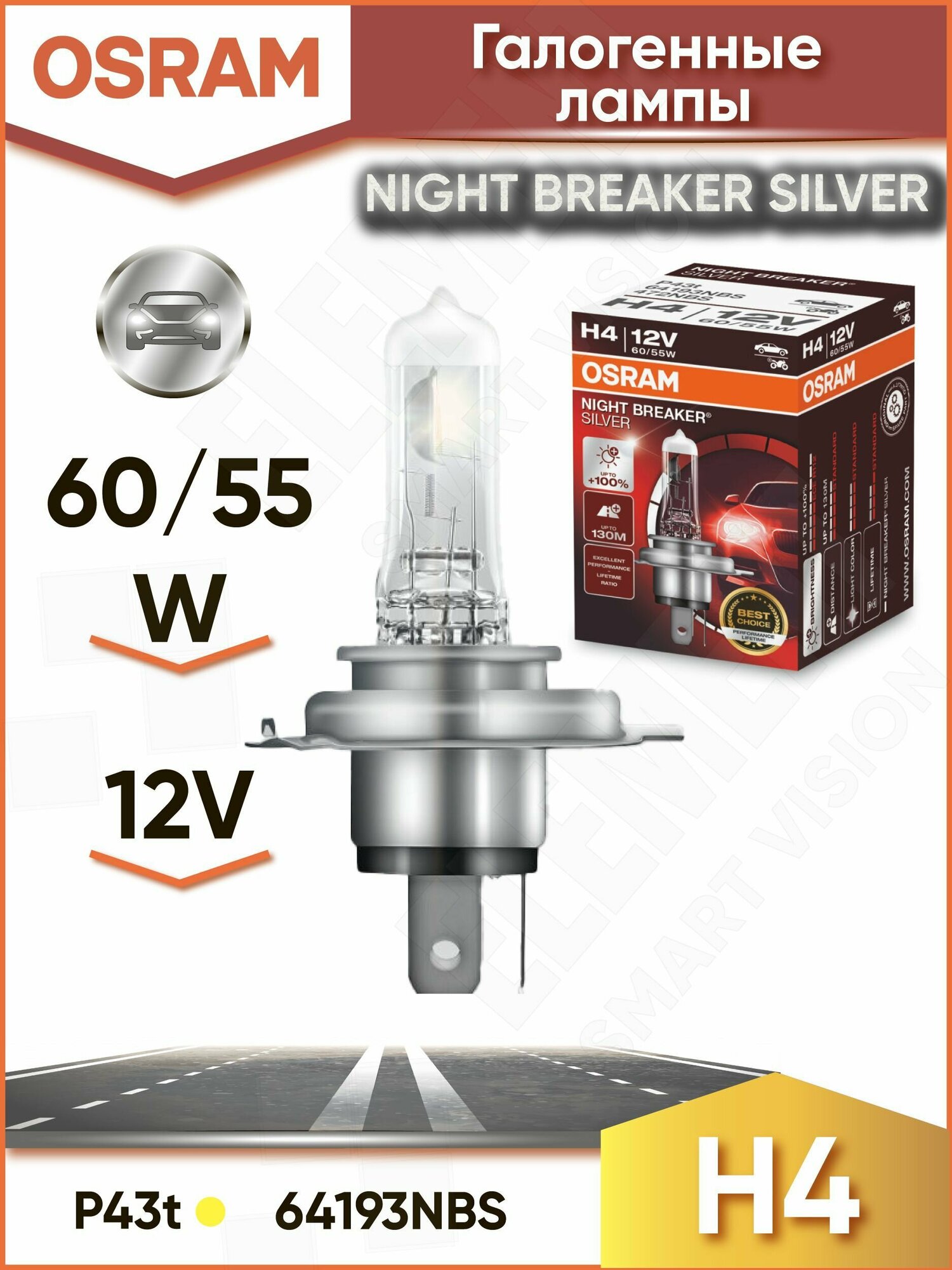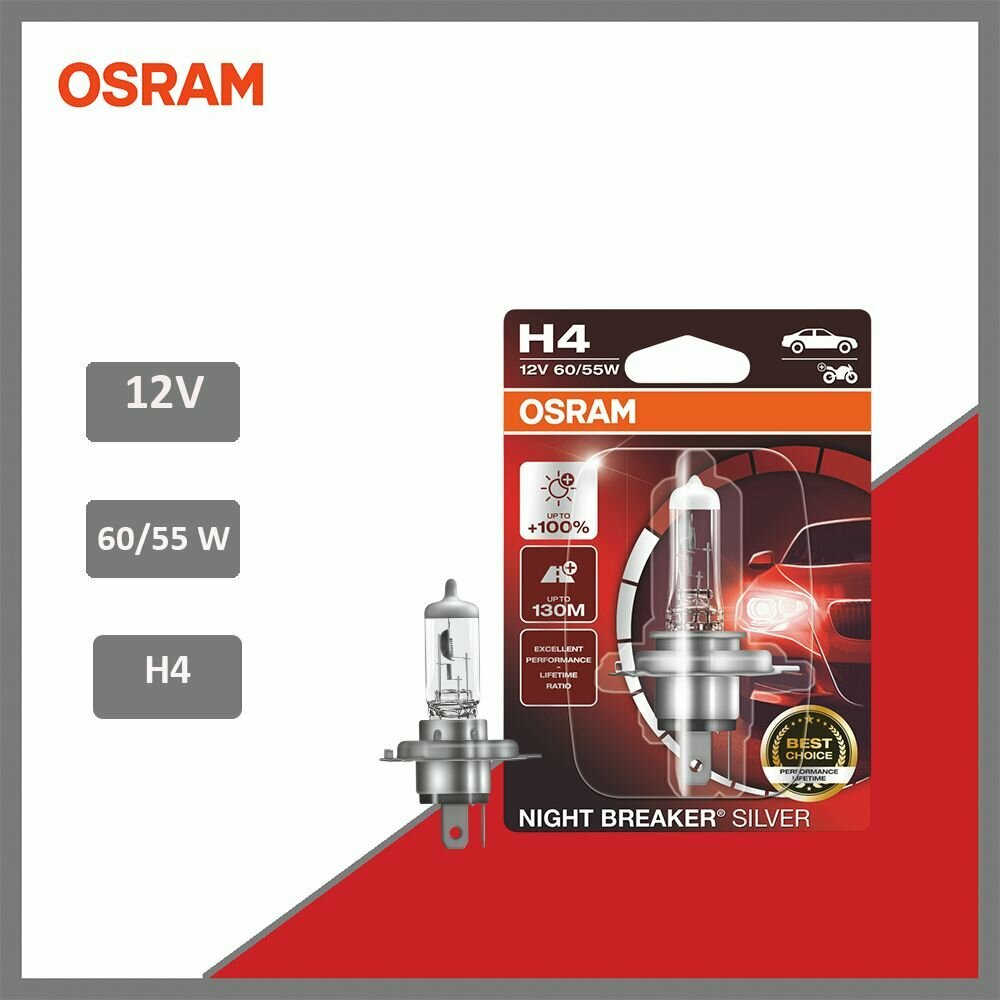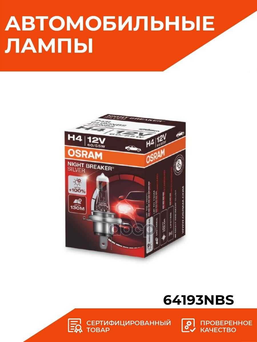 - Галогенная лампа Osram Night Breaker Silver H4 12V 60/55W 64193NBS-HCB