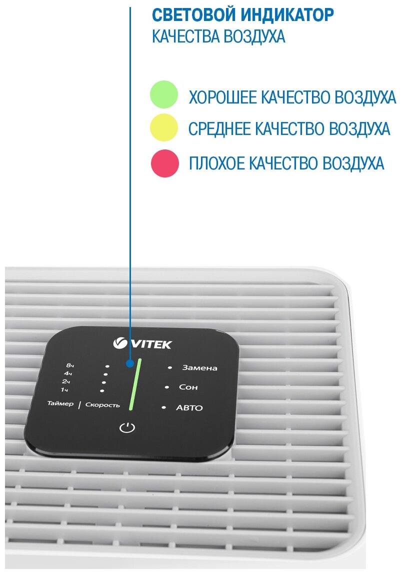 Создать в комнате или офисе площадью 30 м2 идеальный микроклимат способен очиститель воздуха Vitek VT-8558. Благодаря системе фильтрации с НЕРА-фильтром, устройство очищает воздух от дыма, частиц пыли и бактерий, обеспечивая идеальные условия для жизни или работы.