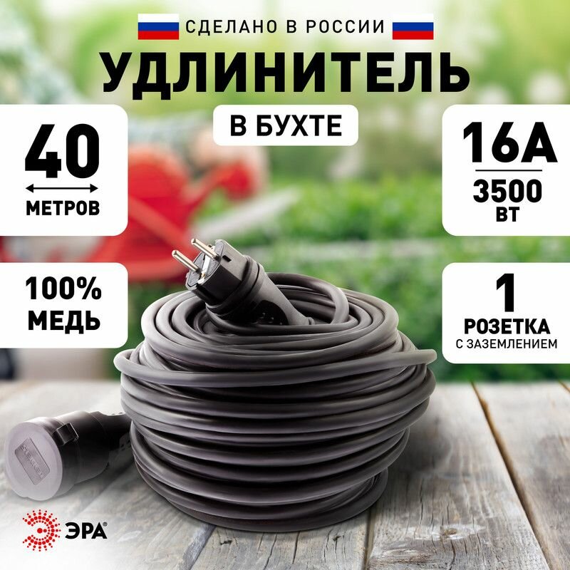 Удлинитель силовой Эра UPx-1e-3x25-40m-IP44(KG) (Б0050865) 3x2.5кв.мм 1розет. 40м КГ 16A без катушк