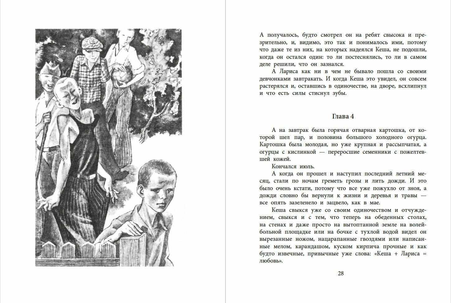 11-летний мальчик в интернате в первые месяцы войны оказывается парализован выходками одного парня, унижающего его человеческое достоинство. Кеша упустил момент, когда можно было осадить подростка,вот и стали над ним все потешаться. Книга о становлении характера, о взрослении. В конце он совершает отважный поступок, который помог изменить отношение ребят к нему.На мой взгляд, скучновато написано для детей:много внутренних переживаний, мало действий. Оформление хорошее, рисунков достаточно и они оставляют тоже хорошее впечатление.