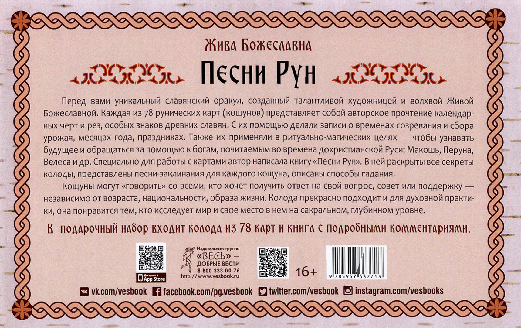 Песни рун. Книга толкований к кощунам Черты и Резы 78 карт + брошюра (Жива Божеславна); ИГ "Весь", 2021