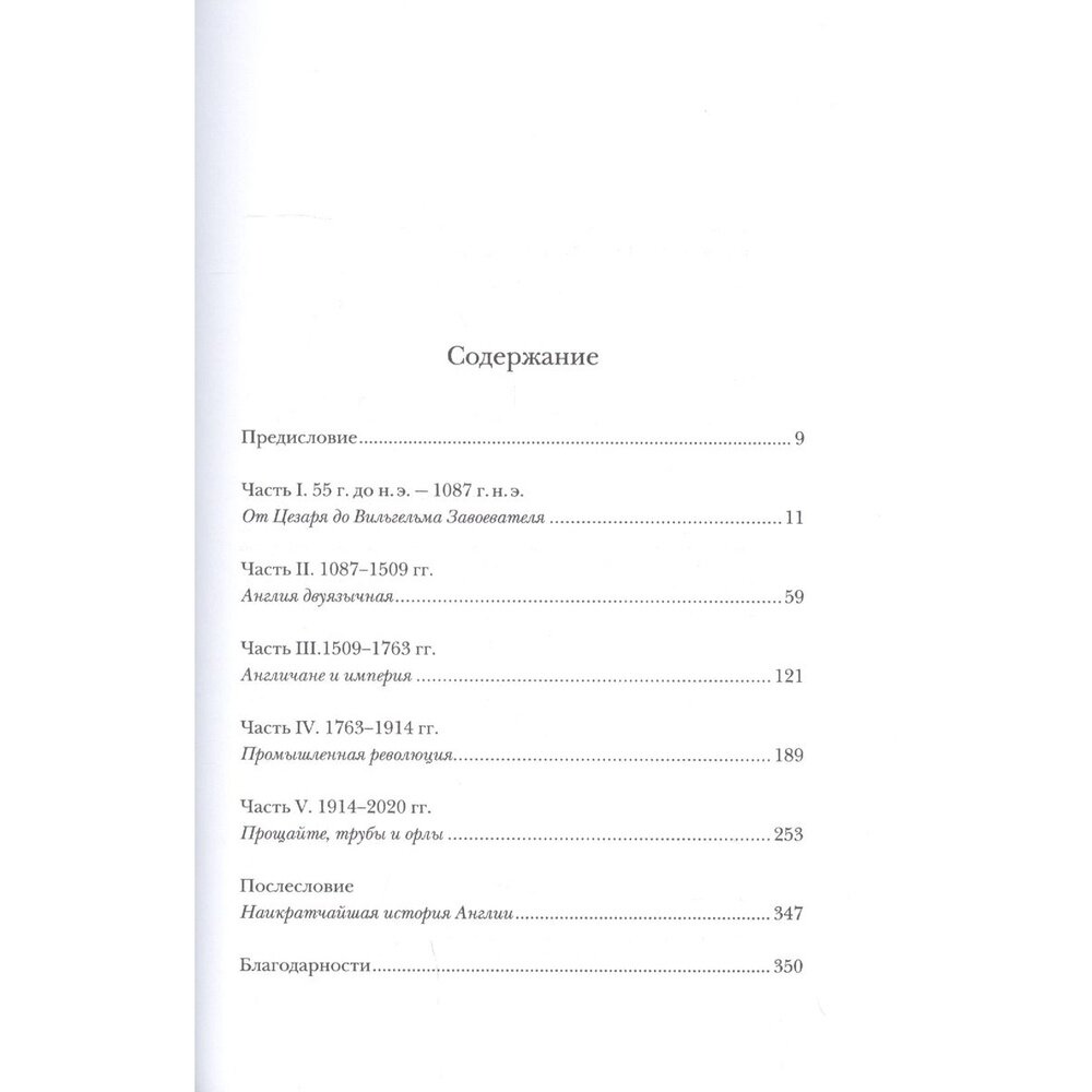 Кратчайшая история Англии - от рассветных часов 27 августа 55 г. до н.э., когда у Кента появился флот Юлия Цезаря (беспрецедентный случай, когда время появления страны на исторической арене можно обозначить с точностью почти до определенного часа), до современности (последние годы премьерства Терезы Мэй, приход к власти Бориса Джонсона в 2019-м и Брексит). Освещены все самые важные моменты английской истории в общемировом контексте. Материал дается по хронологическому принципу и разделен на пять частей: от Цезаря до Вильгельма Завоевателя (55 г. до н. э. - 1087 г. н. э.), от Генриха I до Генриха VII (1087-1509), а также периоды Британской империи (1509-1763), Промышленной революции (1763-1914) и современности (1914-2020). Описание и анализ событий сопровождаются иллюстрациями, картами и схемами.
