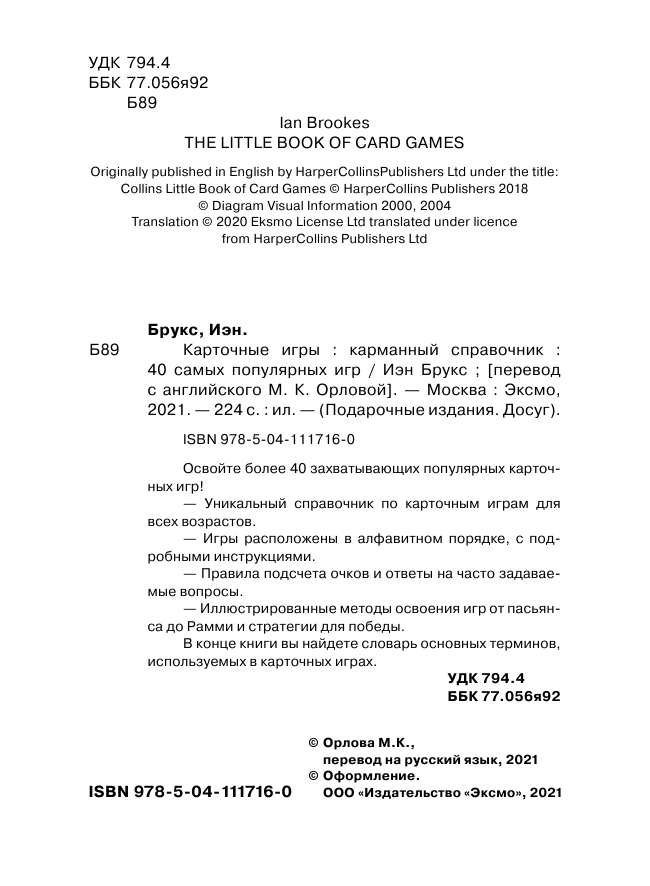 Карточные игры: Игры для всех возрастов (Брукс Иэн); ООО "Издательство "Эксмо", 2021