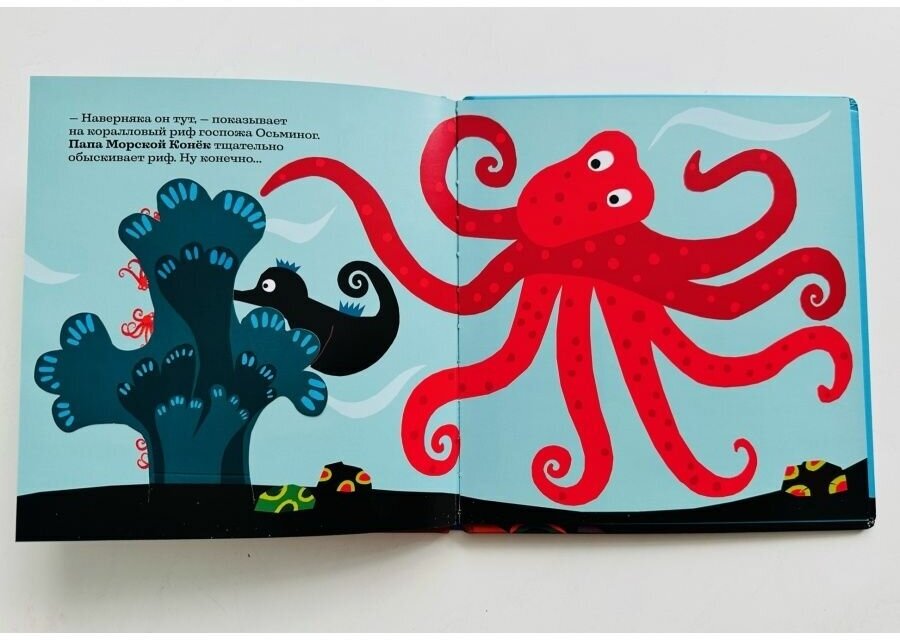 «Раз, два, три, четыре, пять, я иду тебя искать!» – весёлое и доброе приключение-квест с хорошим концом. Маленький читатель путешествует по океану вместе с Морским коньком, разыскивая его сынишку, расспрашивая подводных обитателей, осматривая ракушки, рифы и покрытые водорослями скалы.
