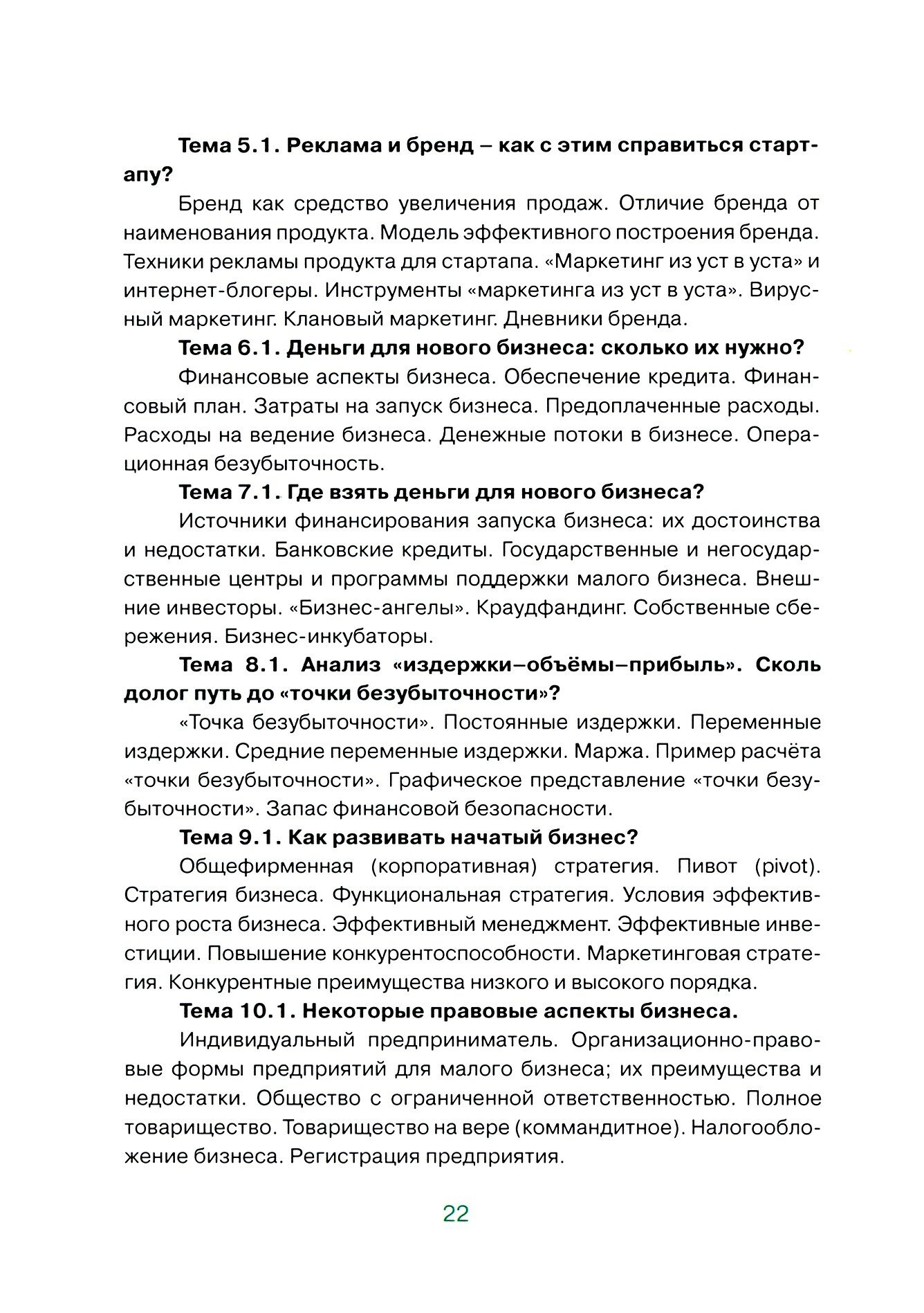 Программа создана в помощь учителю для обучения старшеклассников на уроках предпринимательства. Включает перечни учебно-методических и материально-технических материалов. Предоставлены примеры организационно-методических материалов и результатов апробации II и III разделов.