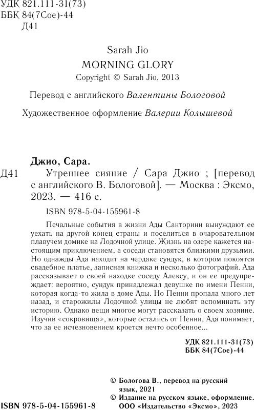 Книга: Утреннее сияние (Джио Сара); ООО "Издательство "Эксмо", 2021