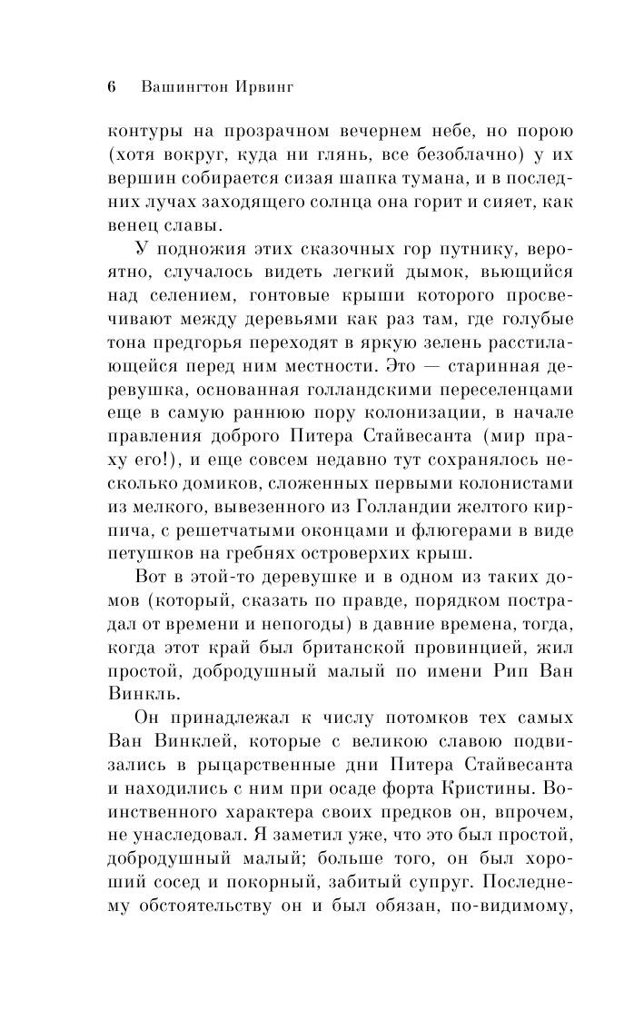 Что могу сказать? Для меня это было первое знакомство с Ирвингом, и оно меня не разочаровало. Новеллы в данном сборнике вроде бы ни чем не примечательны, однако через них ты попадаешь в отдельный мир. Мир европейского и американского фольклора, голландских поселений, отгороженных грозными горами от внешнего мира, и людей, живущих медленной, размеренной, \"сонной\" жизнью. Всё это обволакивает тебя и ты становишься как бы частью действия.