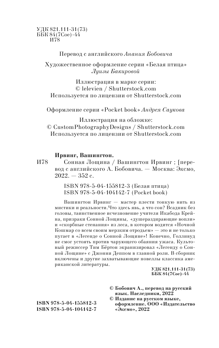 Книга: Сонная Лощина (Вашингтон Ирвинг); Эксмо, Редакция 1, 2022