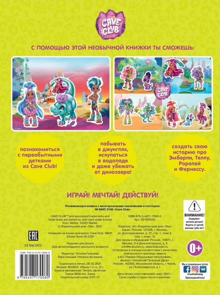 Cave Club. МНП 2108. Развивающая книжка с многоразовыми наклейками (Гальцева Т. (ред.)); АО 'Издательский дом 'Лев', 2021