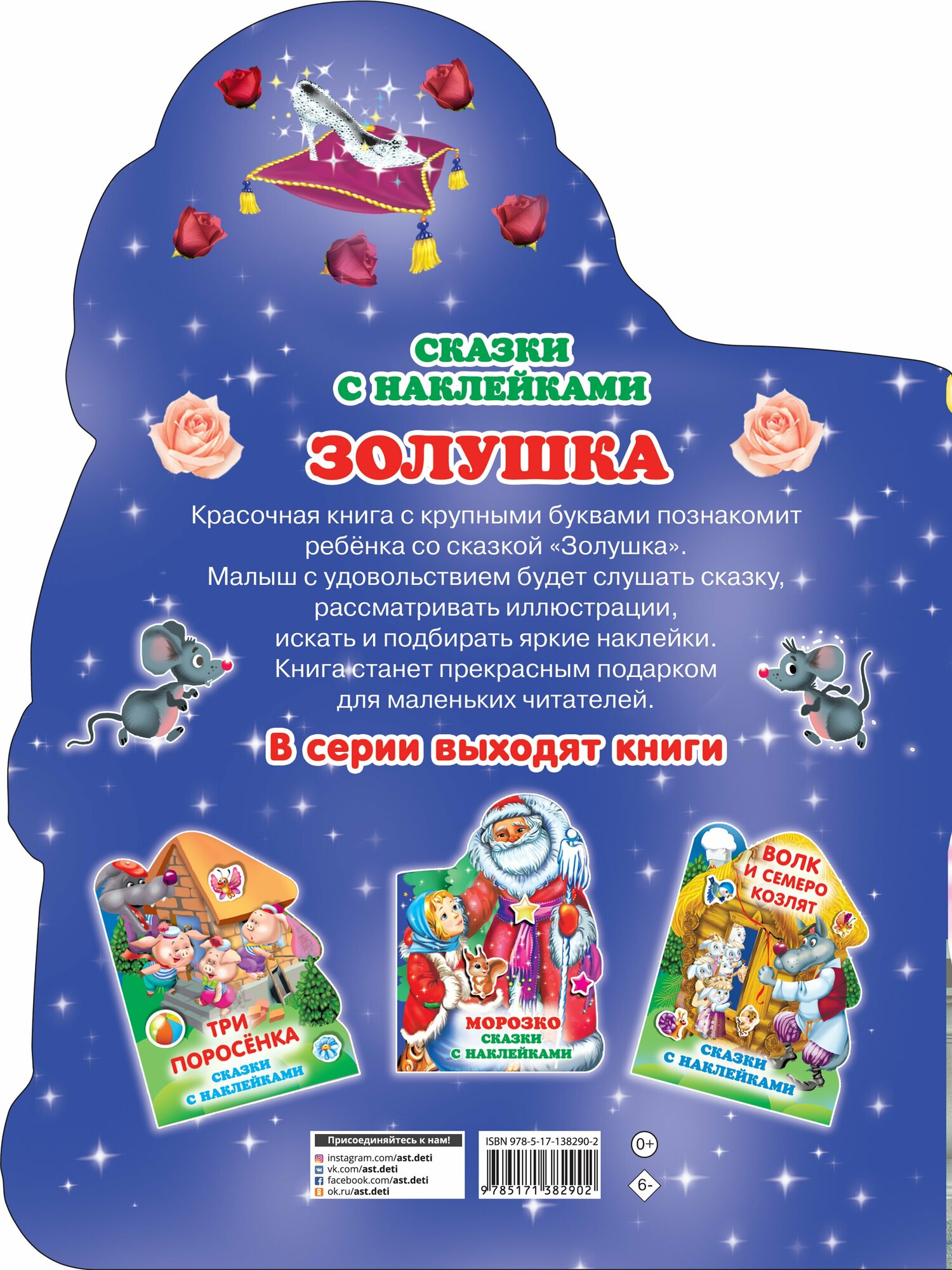 Золушка-любимая сказка моего ребенка.Данное издание очень интересное,с наклейками.Ребенок с интересом читает сказку и наклеивает наклейки в нужные места.Сказка поучительная и добрая.Уже много лет остается нестареющей классикой.Данное издание рассчитано на детей младшего школьного возраста.Картинки яркие.