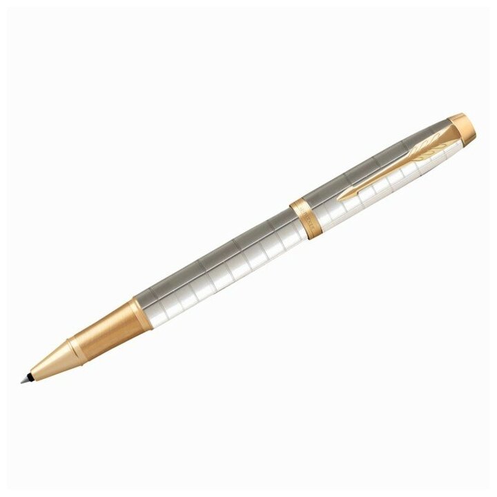 Ручка-роллер Parker из коллекции IM Premium.Матовый анодированный алюминий, прошедший пескоструйную обработку, прекрасно сочетается с оригинальными и актуальными гравированными узорами. Дизайн дополнен позолоченными декоративными элементами.Система заправки: заменяемые стандартные стержни Parker для ручек-роллеров.Основные особенности дизайна:новый зажим-стрела с тремя широкими перьями, укороченная форма торца на колпачке, широкое кольцо на корпусе из 3 соединенных вместе колец, на среднем выполнена гравировка логотипа Parker. Ручка упакована в оригинальную подарочную коробку Parker.
