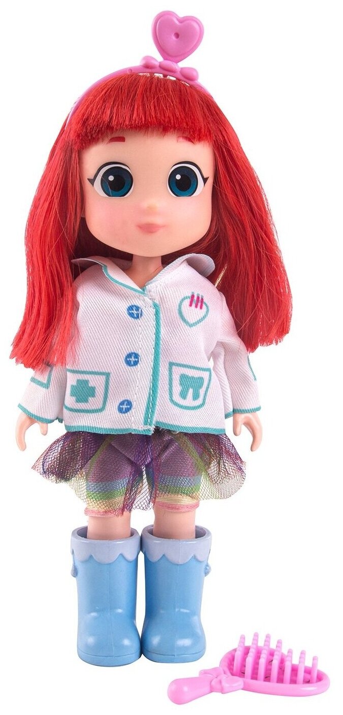 Добрая и находчивая Руби, главная героиня мультсериала «Радужный мир Руби», с лёгкостью справляется со всеми трудностями благодаря своей находчивости и фантазии. Она спешит на встречу новым приключениям!Кукла Руби повторяет образ главной героини мультсериала Rainbow Ruby (Радужный мир Руби) - маленькая шестилетняя девочка, которая путешествует в Радужный городок, где живут её игрушки и куклы, чтобы помочь своим друзьям, когда они в беде. Девочка с легкостью осваивает любую профессию и справляется с любыми задачами.Кукла выполнена из высококачественного пластика, у неё шелковистые рыжие волосы с прядями цвета радуги.Руки, ноги и голова вращаются.В комплект входит расческа для волос и наряд для соответствующего образа. В ассортименте всего три образа: повседневный образ, балерина и доктор.