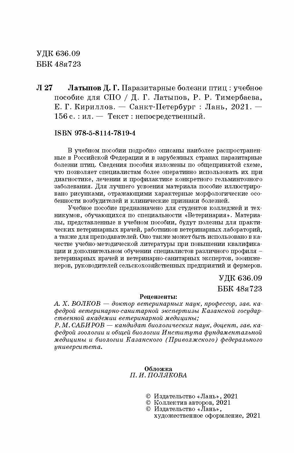 Сервис сравнения цен СкидкаГИД предлагает сравнить цены на товар «Книга: Паразитарные болезни птиц.СПО (Латыпов Далис Гарипович, Тимербаева Разалия Рустамовна, Кириллов Евгений Геннадьевич); Лань, 2021»