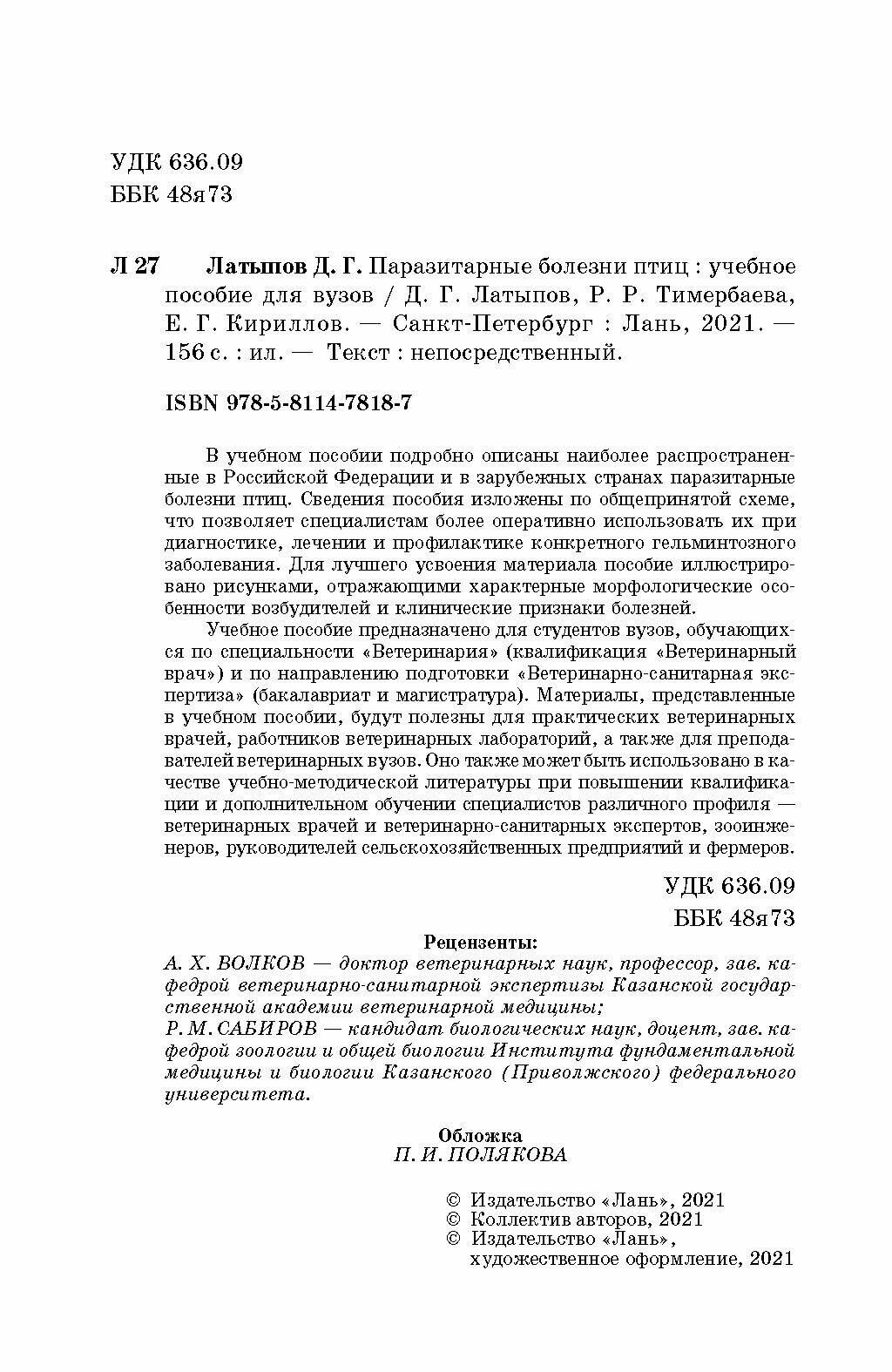 Паразитарные болезни птиц.Уч.пос (Латыпов Далис Гарипович, Тимербаева Разалия Рустамовна, Кириллов Евгений Геннадьевич); Лань, 2021
