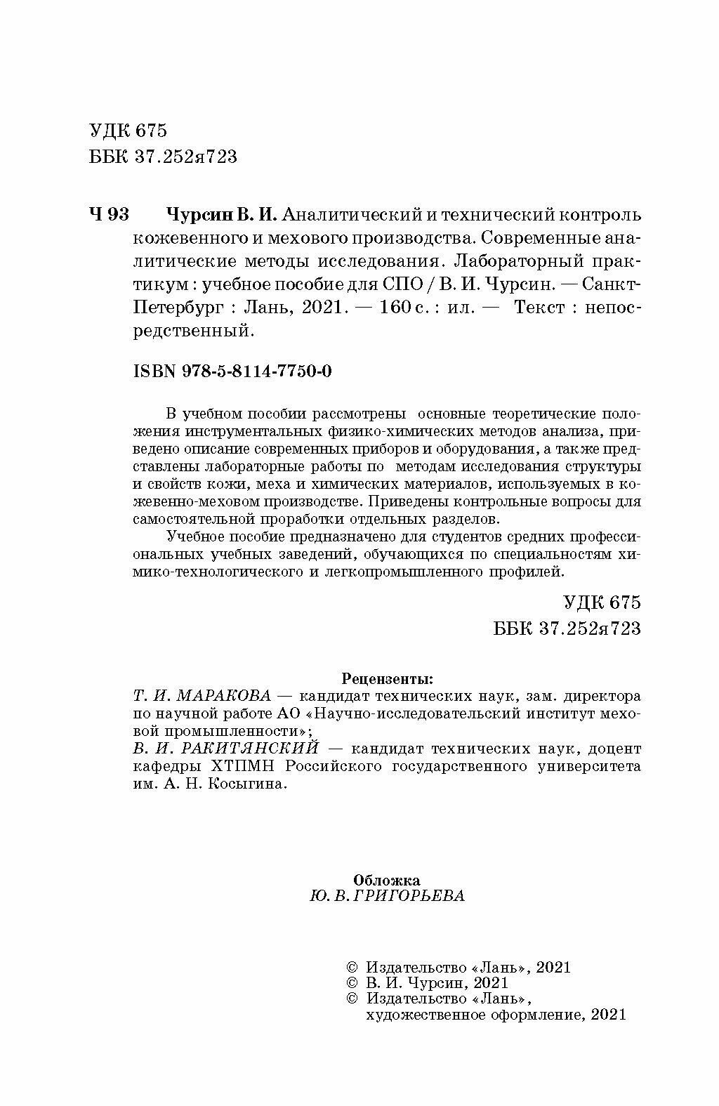 Аналитический и технический контроль кожевенного и мехового производства. Лабораторный практикум (Чурсин Вячеслав Иванович); Лань, 2021