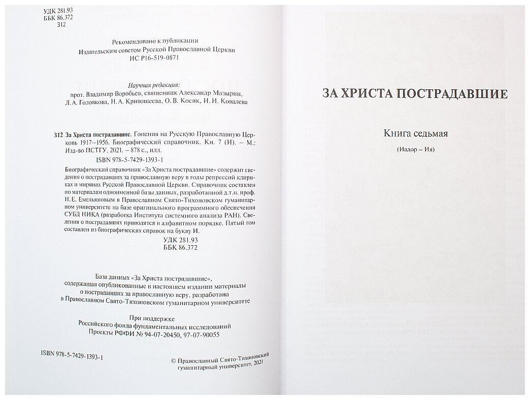 За Христа пострадавшие Гонения на Русскую Православную Церковь 1917-1956 гг Библиографический справочник Книга 7 И (Воробьев В., прот., Мазырин А., свящ., Головкова Л. и др. (ред.)); ПСТГУ, Издательство Православного Свято-Тихоновского гуманитарного университета, 2021