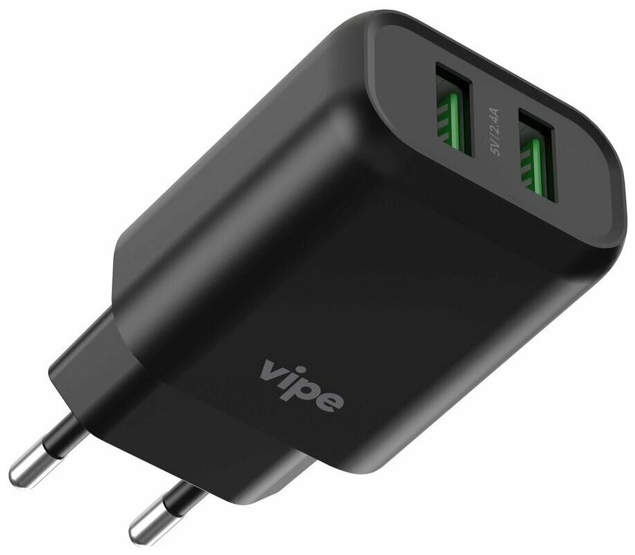 Сетевое зарядное устройство Vipe 12W 2xUSB 2.4A черный Noname VPTST2UABLK