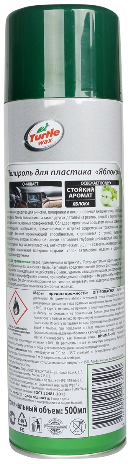 Полироль для пластика TURTLE WAX яблоко 500мл