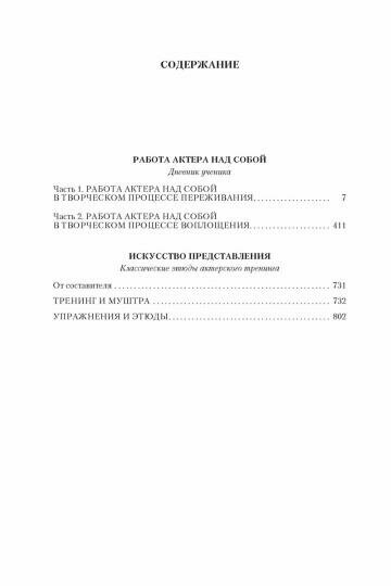 Книга из разряда самых необходимых для тех, кто интересуется режиссурой или актерской карьерой. Метод Станиславского до сих является актуальнейшим во всех странах мира, поэтому эта книга - идеальная "методичка" актерской игры из уст самого автора метода. Очень полное издание текстов автора, удобно собранное в одном томе.