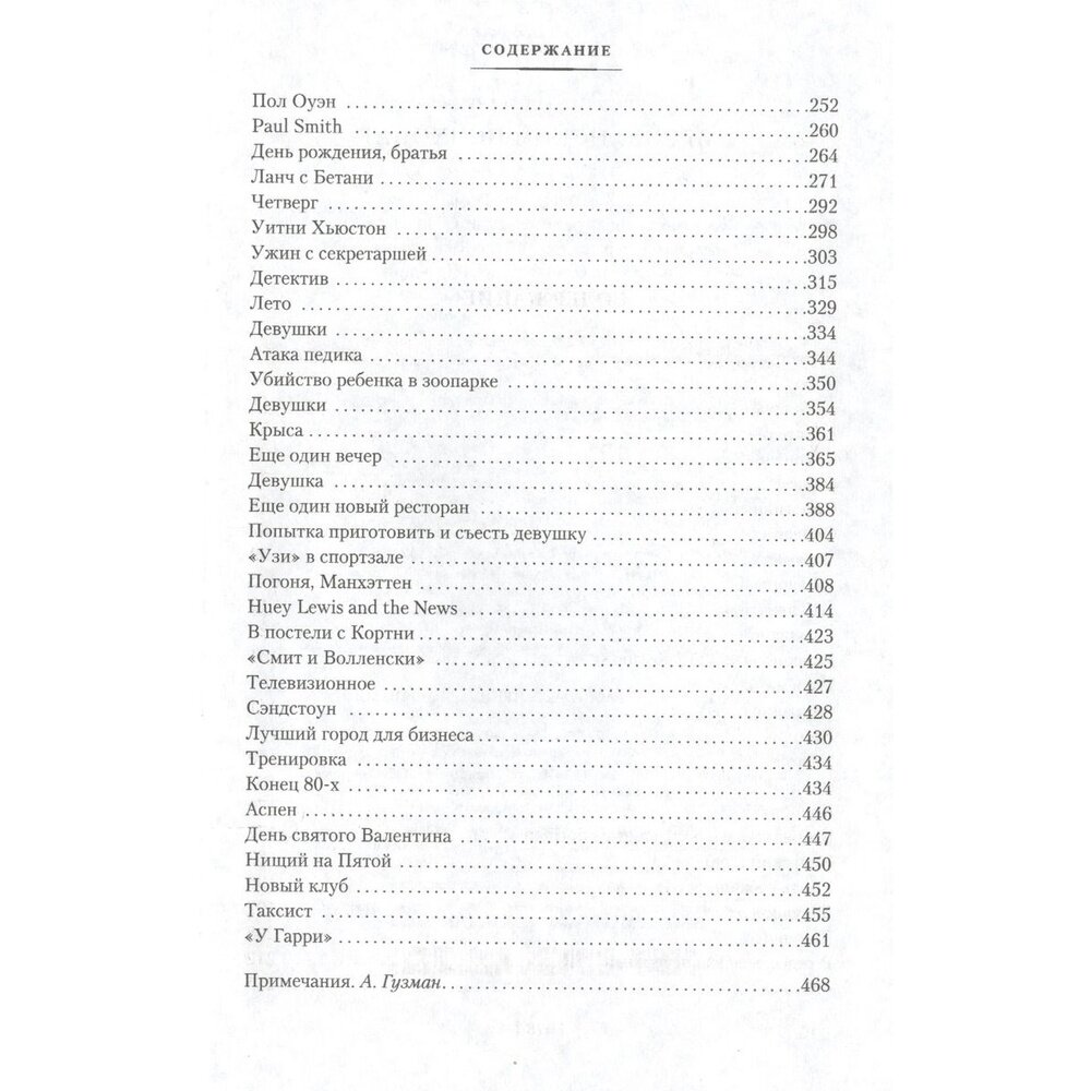 Дамы и Господа, встречайте. Эта книга прекрасна в своем естестве, и каждый кого не зацепили бесконечно точные описания одежды, главы полностью посвященные отдельным музыкальным исполнителям, сам мир безумно богатых и глупых людей зацикленных на ресторане где им поесть вечером и костюмом что им надеть на вечер, просто не созданы для этой книги. Повествование ровно настолько интересно, как это может себе представить человек, покупающий книгу "Американский психопат", вы читаете книгу про мир безумного человека, весь его мир это мелочи из которых соткана каждая страница этой книги, он вас впускает, а когда вы заканчиваете читать видна огромная надпись ЭТО НЕ ВЫХОД. Для каждого ценителя моды, любителя длинных описаний и до одури смешных диалогов про пустяки, эта книга просто жизненно необходима, сцены же насилия и секса, а также метаморфоз происходящих в голове главного героя невероятно хороши. Книга определенно нужна каждому, кто готов читать про гвозди в руках и костюм от Валентино. Отдельно про само издание, оно превосходно, а держать книгу в руках уже огромное удовольствие. Советую к приобретению.