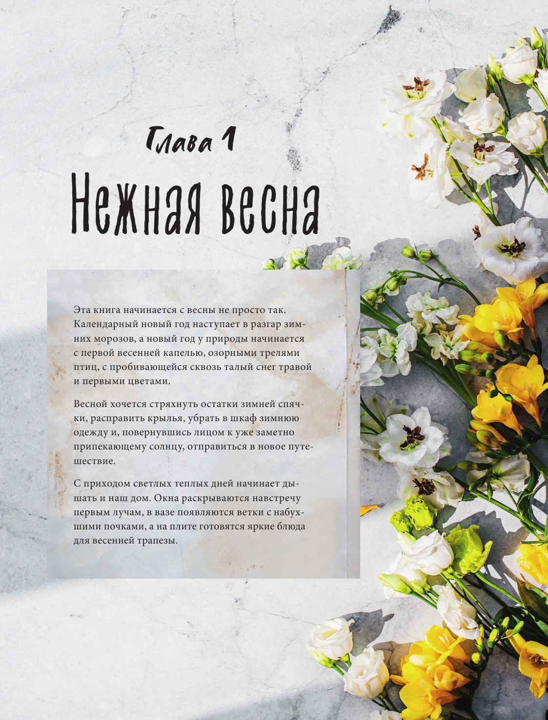 В этой книге собраны более пяти десятков любимых сезонных рецептов автора: нежные крапивные щи, чизкейк с черешней в весеннем разделе, суп из свежих белых грибов и трайфл с лесными ягодами — в летнем, суп из пряной тыквы и ризотто с перепелом — в осеннем, оливье с говяжьим языком, каперсами, заливное по бабушкиному рецепту и желе из шампанского — в зимнем. Часть рецептов уже стала семейным преданием (и с каждым автор рассказывает трогательную историю), а некоторые сочинены совсем недавно и уже зарекомендовали себя. Важно, что все упомянутые ингредиенты без проблем можно найти в ближайшем супермаркете, а инструкции так просты и увлекательны, что и процесс, и результат никого не оставят равнодушными.