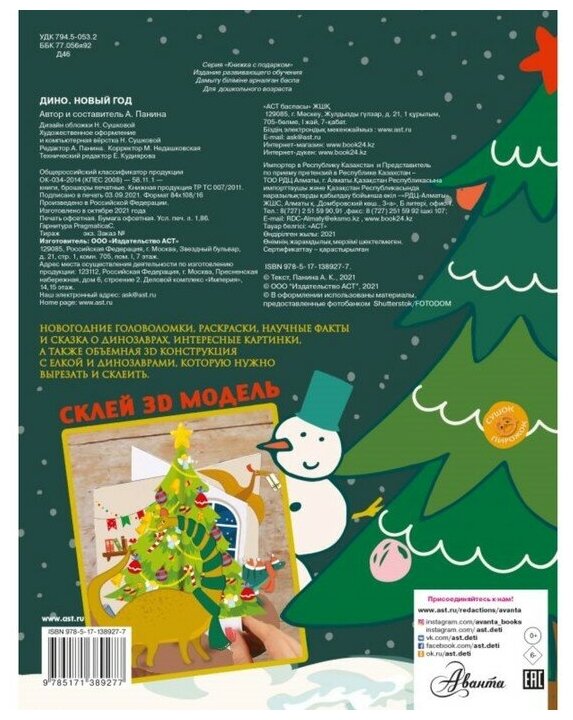 Хорошая новогодняя книжка для семейного досуга, внутри интересные задания, описания динозавров и сказка большими буквами для самостоятельного чтения.