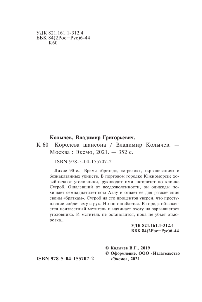Книга: Королева шансона (Колычев Владимир Григорьевич); ООО "Издательство "Эксмо", 2021