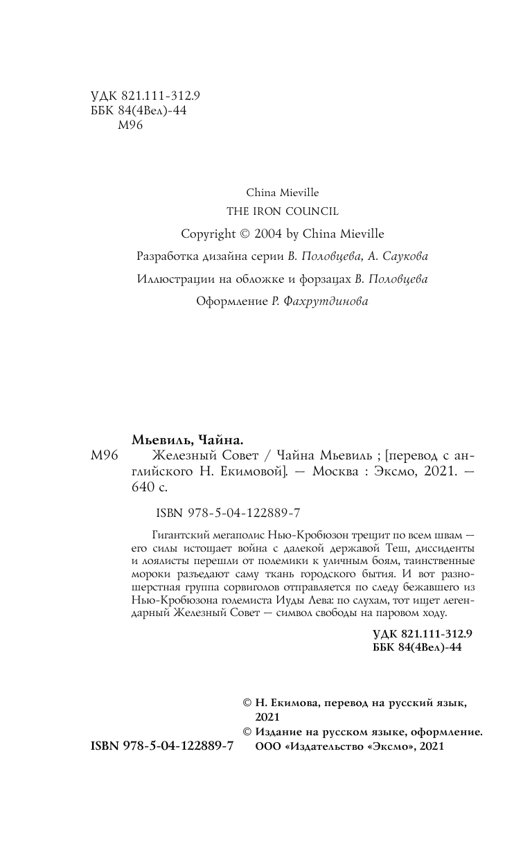 Книга: Железный Совет (Чайна Мьевиль); Эксмо, Fanzon, Редакция 1, 2021