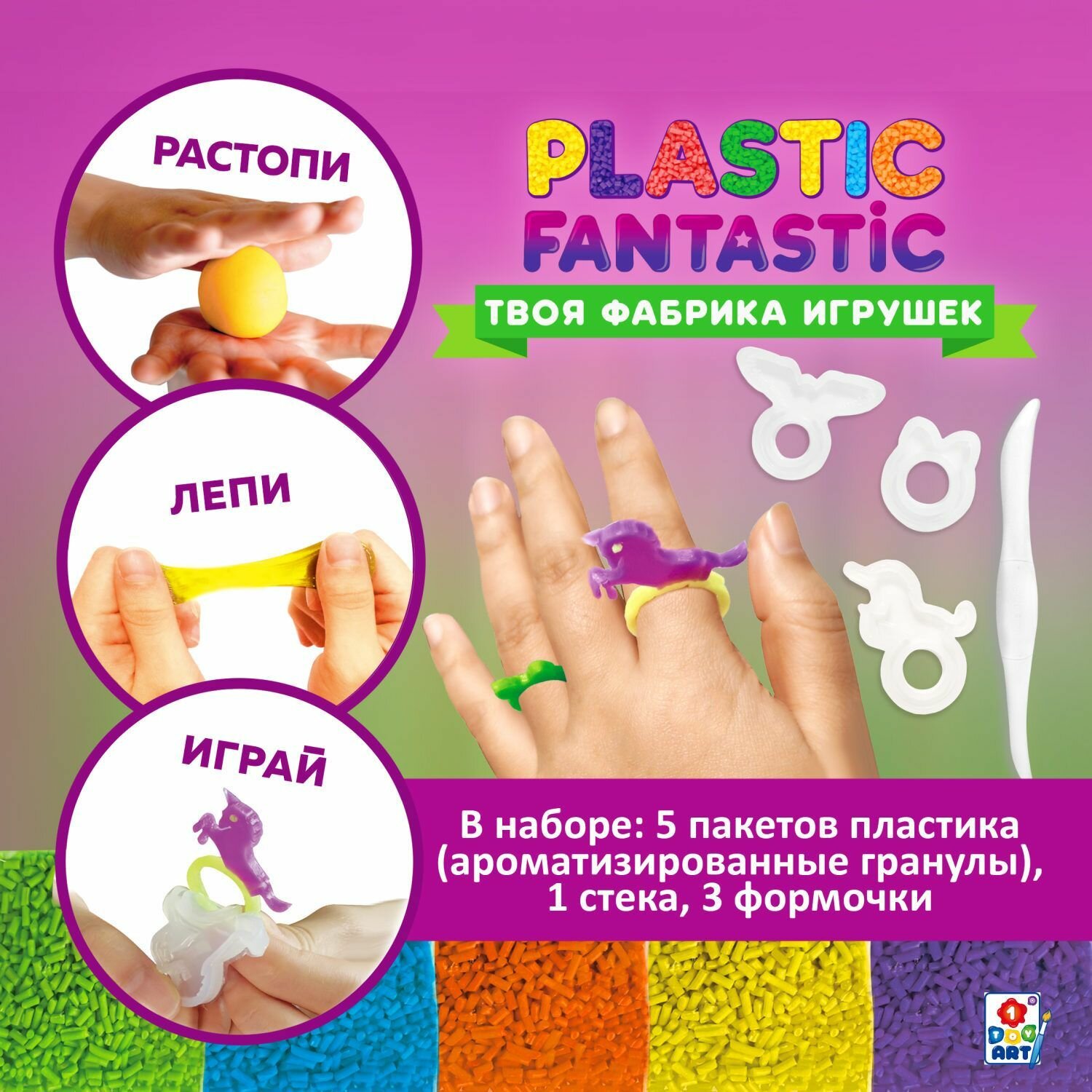 PLASTIC FANTASTIC - это эксклюзивная линейка наборов для изготовления игрушек, украшений и брелоков из гранулированного пластика.