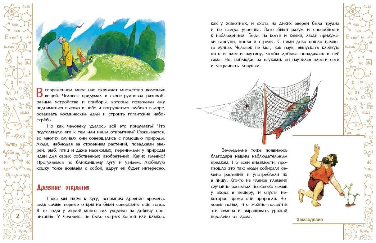 С доисторических времён люди пользуются изобретениями, взятыми на вооружение у природы. Наблюдая за природой люди продолжают делать множество открытий. Про некоторые из открытий рассказано в этой книге, например: