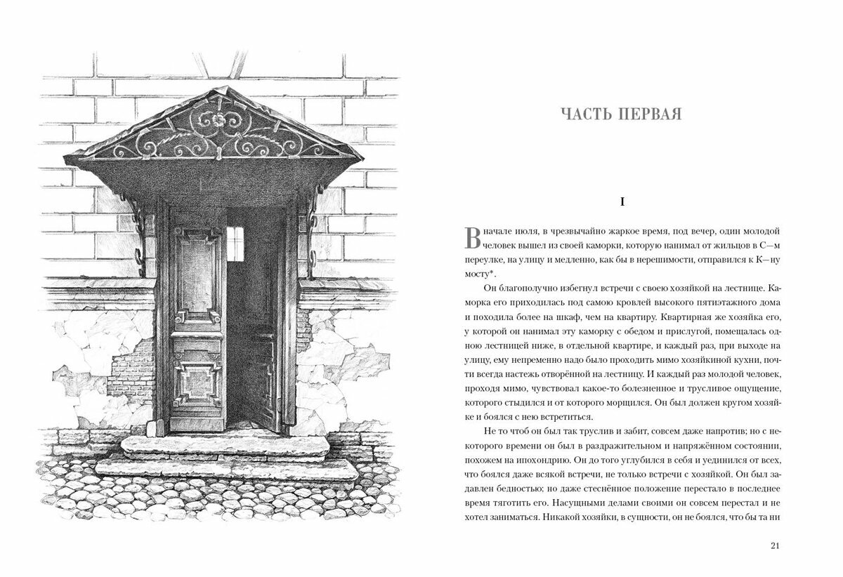 Второй отзыв за этот месяц на книги от издательства "Нигма". На этот раз произведение является подарком для себя любимой, а не для ребёнка. Когда подрастёт, конечно же, познакомим и его с ним. Дома у нас уже есть экземпляры "Преступления и наказания" от других издательств. Все по-своему уникальны: в старых книгах есть своя прелесть. Но хотелось познакомиться и с обновленным, свежим, качественным. Это издание стоит своих денег, достойный подарок для ценителей литературы "высокого уровня". Такой издание нужно хранить в библиотеке, передавать из поколения в поколение. Подросткам явно будет приятнее знакомиться с шедевром в таком формате, чем с экрана планшета или с маленькой непримечательной книжечкой. Иллюстрации, как обозначено в описании, созданы прекрасным художником А.А. Харшаком. Реалистичные, карандашные, чёрно-белые, ненавязчивые. Аккуратно обрамляют произведение на отдельных страницах и не мешают повествованию. С качеством и вкусом, но при этом не скучно, как часто бывает при таких условиях. К книге хочется прикасаться бережно, хранить её в тепле и уюте, словно что-то ценное и хрупкое. Так что рекомендую это издание к первому и повторным прочтениям, для всех возрастов.