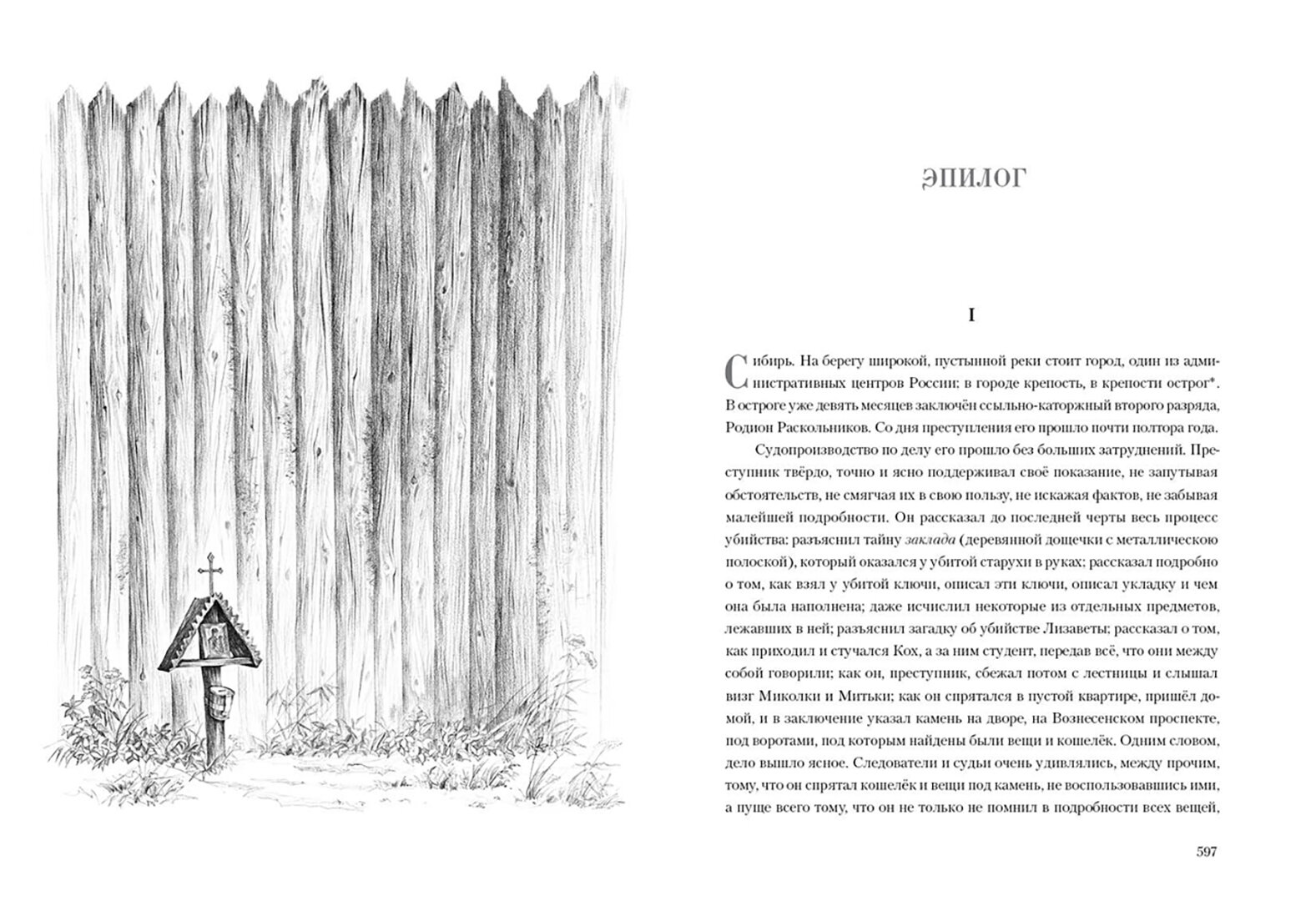 В издательстве "Нигма" книга выйдет с иллюстрациями Заслуженного художника РФ Андрея Александровича Харшака. Его иллюстрации к роману "Преступление и наказание" экспонировались как в России, так и за рубежом. Андрей Александрович - признанный мастер книжной графики. Около десяти лет он возглавлял кафедру графики Северо-Западного института печати и руководил Санкт-Петербургским центром книги и графики. В его графических работах блестяще передана атмосфера Санкт-Петербурга Достоевского, благодаря чему роман "Преступление и наказание" с его иллюстрациями становится выдающимся образцом книгоиздания.
