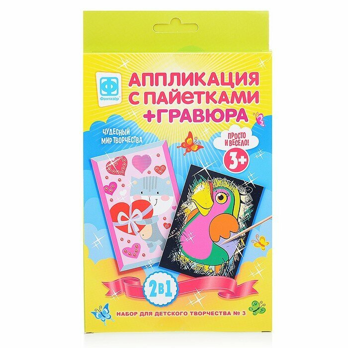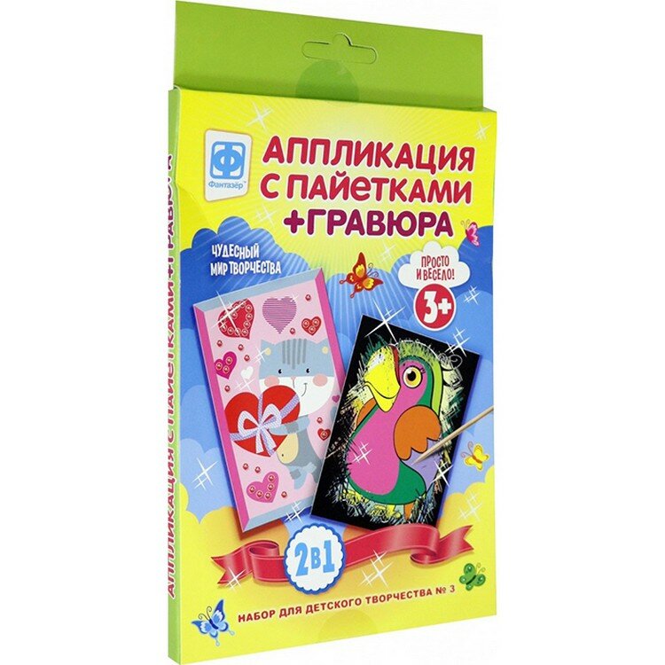 Развивающий набор объединяет сразу несколько любимых детских занятий. Сначала нужно создать объёмную аппликацию, подбирая и наклеивая фигурные детали, а потом украсить её блестящими пайетками. Работа с пайетками отлично развивает мелкую моторику и координацию, формирует такие важные качества как аккуратность и усидчивость. Создание объёмной картины развивает зрительное восприятие и художественный вкус.