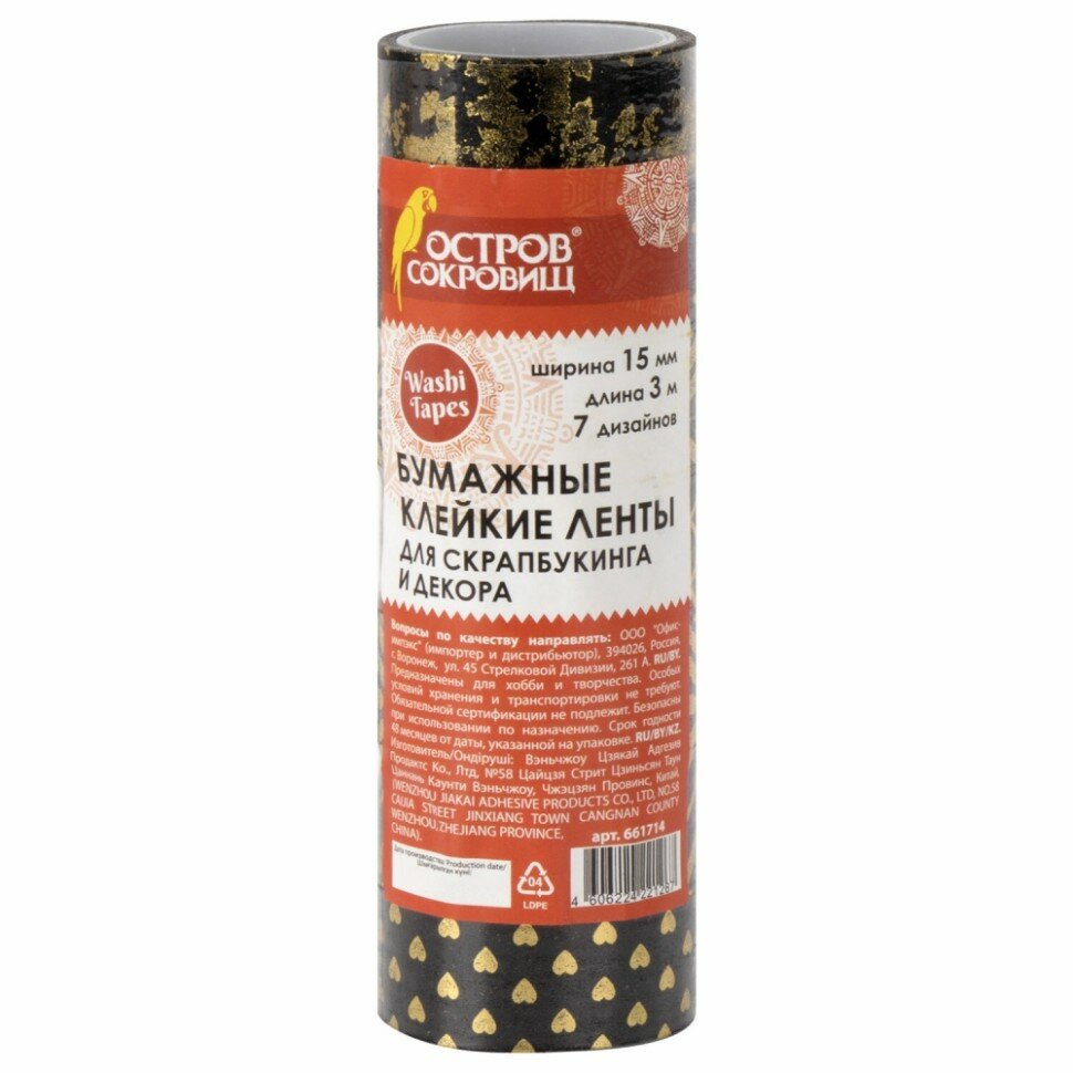 Бумажные клейкие ленты ОСТРОВ СОКРОВИЩ подходят для использования в скрапбукинге, декорирования поделок, открыток, оформления подарков. Декоративные ленты легко приклеиваются и надежно фиксируются на любой поверхности, придавая изделиям оригинальный вид.